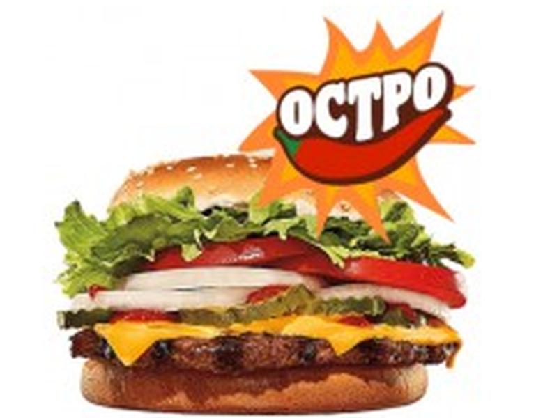 Состав: Это острая версия воппера с сыром — со жгучим соусом вместо кетчупа! Приготовленный на огне бифштекс из 100%-й говядины под острым томатным соусом, два нежных ломтика сыра, сочные томаты, свеженарезанный салат айсберг, густой майонез, маринованные огурчики и лук на нежной булочке с кунжутом.