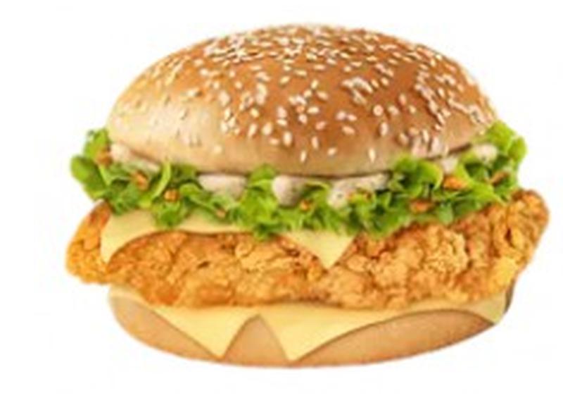 Состав: Большой бургер с нежным филе куриной грудки в хрустящей панировке, с аппетитным грибным соусом, кусочками жареного хрустящего лука, сыром эмменталь и свежим салатом на булочке с кунжутом.