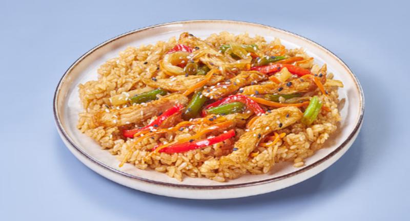 Состав: Курица, рис, соус вок, кунжут, масло подсолнечное, лук репчатый, морковь, стручковая фасоль, пекинская капуста, болгарский перец. *Внешний вид блюда может отличаться от фото на сайте.