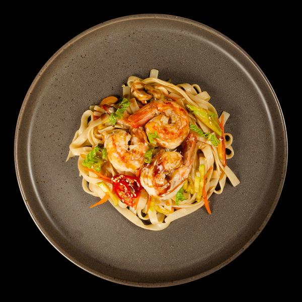 Состав: Лапша на ваш выбор: удон пшеничная, яичная лапша гречневая (Соба) рисовая лапша (фунчоза) морковь, цукини, болгарский перец, шампиньон, имбирно-чесночный соус. На ваш выбор: курица, говядина, свинина, тигровые креветки, морепродукты