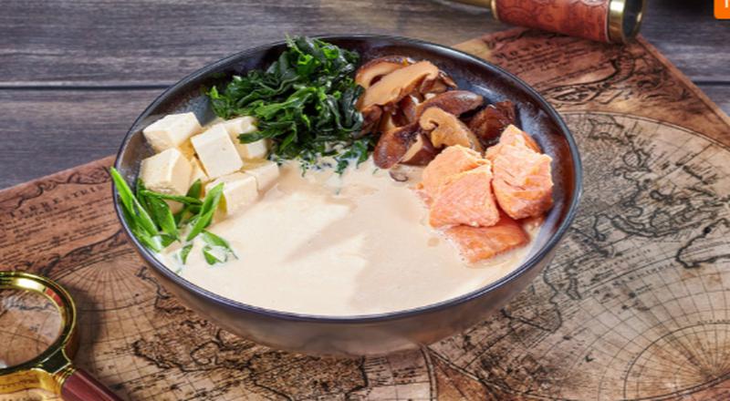 Состав: Бульон мисо, лосось, сливки, грибы шиитаке, водоросли вакамэ, зеленый лук, тофу. *Внешний вид блюда может отличаться от фото на сайте.