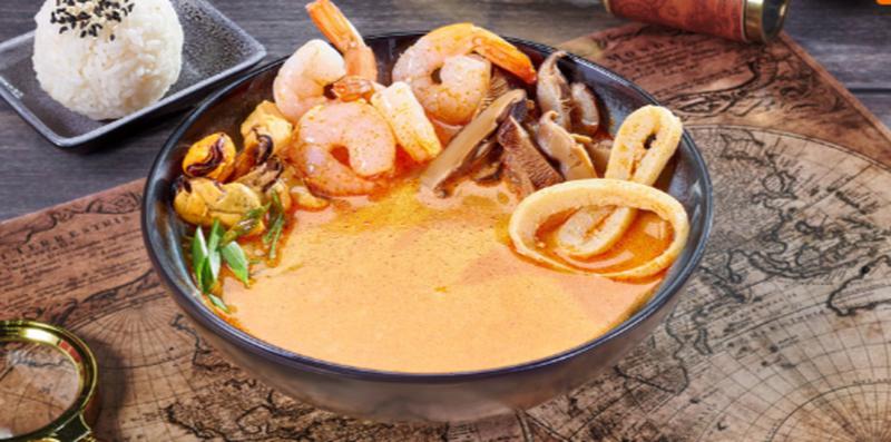 Состав: Бульон том ям, мидии, кальмар, креветки, грибы шиитаке, зеленый лук. *Внешний вид блюда может отличаться от фото на сайте.