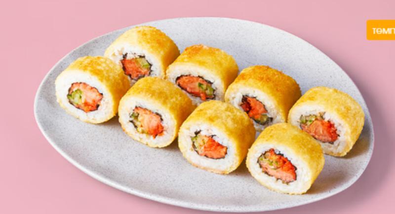 Состав: Лосось, оранжевая икра масаго, соус спайси, огурец, темпурный кляр (темпурная мука, вода), панировочные сухари, рис (рис, вода, заправка для риса), нори *Не забудьте заказать имбирь, васаби и соевый соус. Они не входят в стоимость заказа.