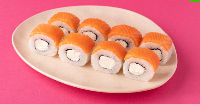Состав: Лосось, сливочный сыр, рис (рис, вода, заправка для риса), нори *Не забудьте заказать имбирь, васаби и соевый соус. Они не входят в стоимость заказа.