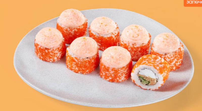 Состав: Сливочный сыр, лосось терияки, огурец, оранжевая икра масаго, фирменный сырный соус, рис, нори. *Не забудьте заказать имбирь, васаби и соевый соус. Они не входят в стоимость заказа.