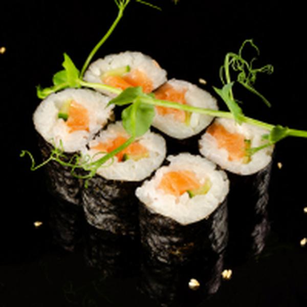 Состав: Свежий лосось, свежий огурец, отварной рис, имбирь, васаби.