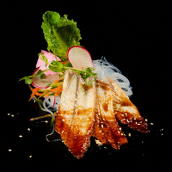 Состав: Копчёный угорь, сашими овощи, имбирь, васаби, соевый соус.