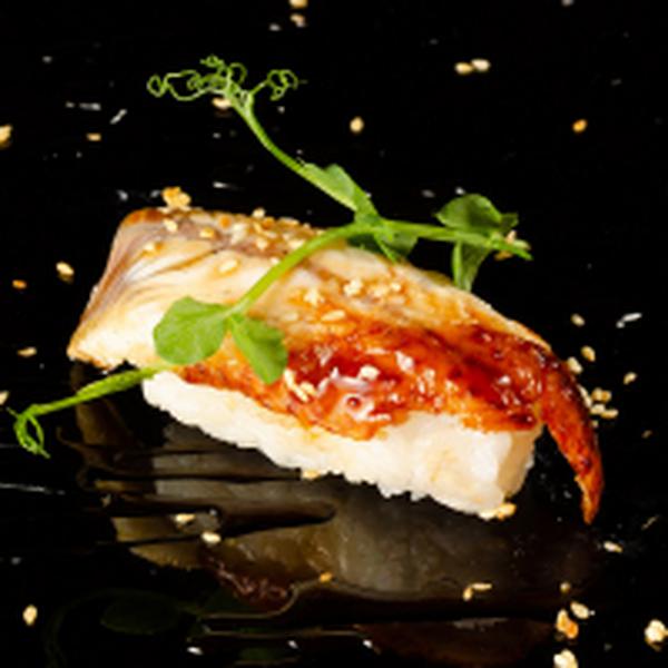 Состав: Копченый угорь, отварной рис, имбирь, васаби, соевый соус.