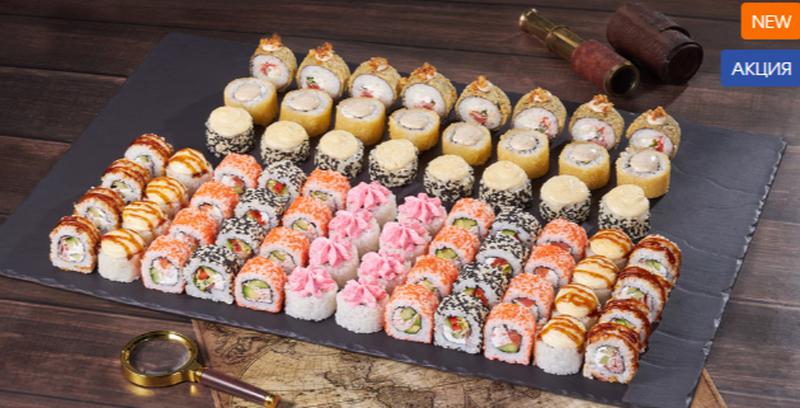 Состав: Ролл Калифорнийский краб (8 шт.), Ролл Калифорнийский чиз (8 шт.), Ролл Калифорнийский фреш (8 шт.), Ролл Кракатау с крабом (8 шт.), Ролл Итальянский ХОТ (8 шт.), Ролл Кентукки хот (8 шт.), Ролл Рио (8 шт.), Ролл Египетская курица (8 шт.), Ролл Монтана (8 шт.). *Не забудьте заказать имбирь, васаби и соевый соус. Они не входят в стоимость заказа. *Внешний вид блюда может отличаться от фото на сайте.