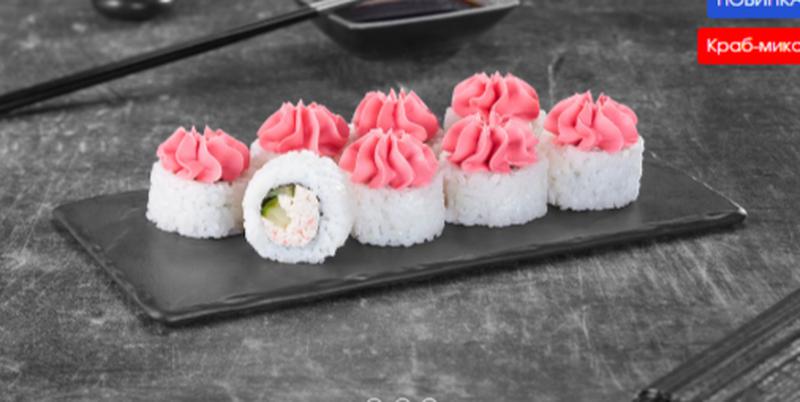 Состав: Крем чиз (розовый), краб-микс, огурец, рис, нори. *Внешний вид блюда может отличаться от фото на сайте.